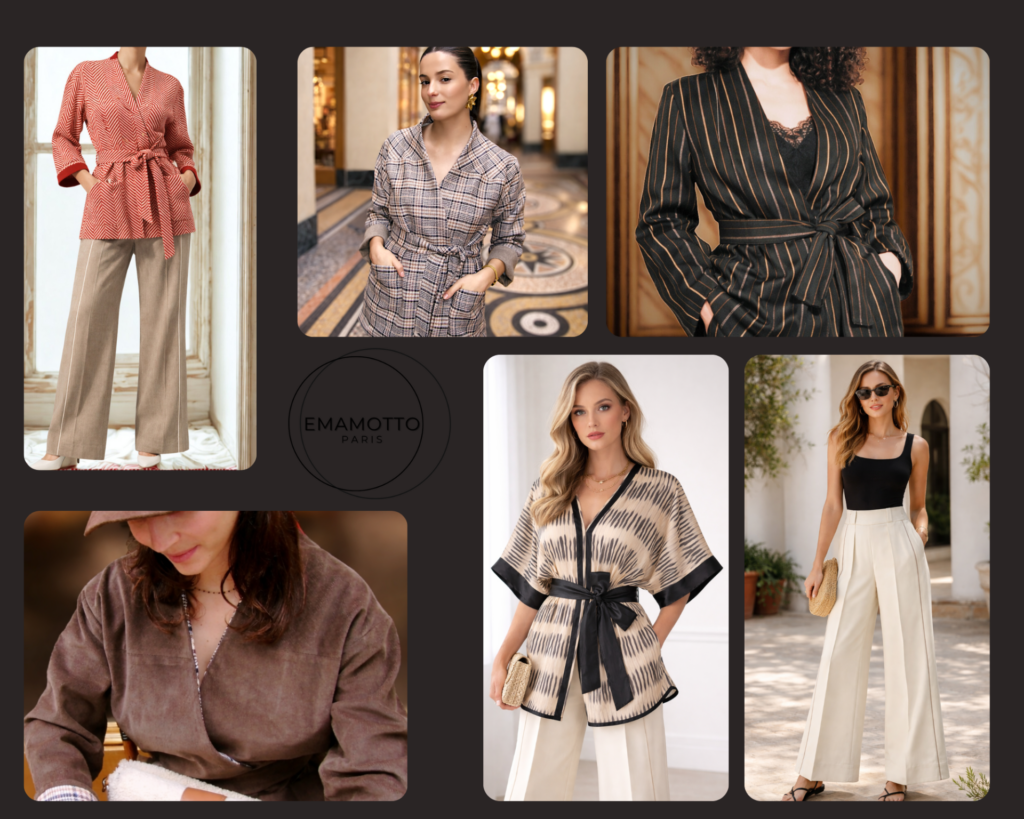 EMAMOTTO Paris propose un service de création sur mesure dédié aux pièces uniques, conçu pour celles et ceux qui recherchent un vêtement singulier, durable et parfaitement ajusté.
